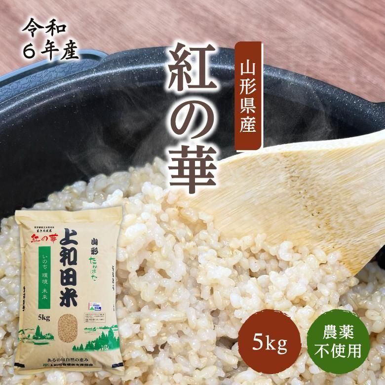 農林水産大臣賞受賞 農薬不使用 紅の華 山形県産 コシヒカリ玄米 (5kg / 令和6年産) 皇室献上農家で育んだ香りと旨味豊かなお米